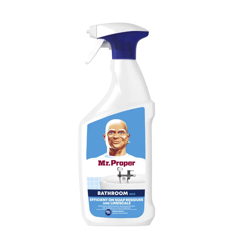 Чистящее средство-спрей Mr Proper для ванной комнаты обладает формулой для защиты блеска, которая предотвращает появление разводов от воды и отложений мыла и воды, чтобы поверхности в ванной комнате дольше оставались блестящими. Оставляет после себя только чудесный свежий аромат.