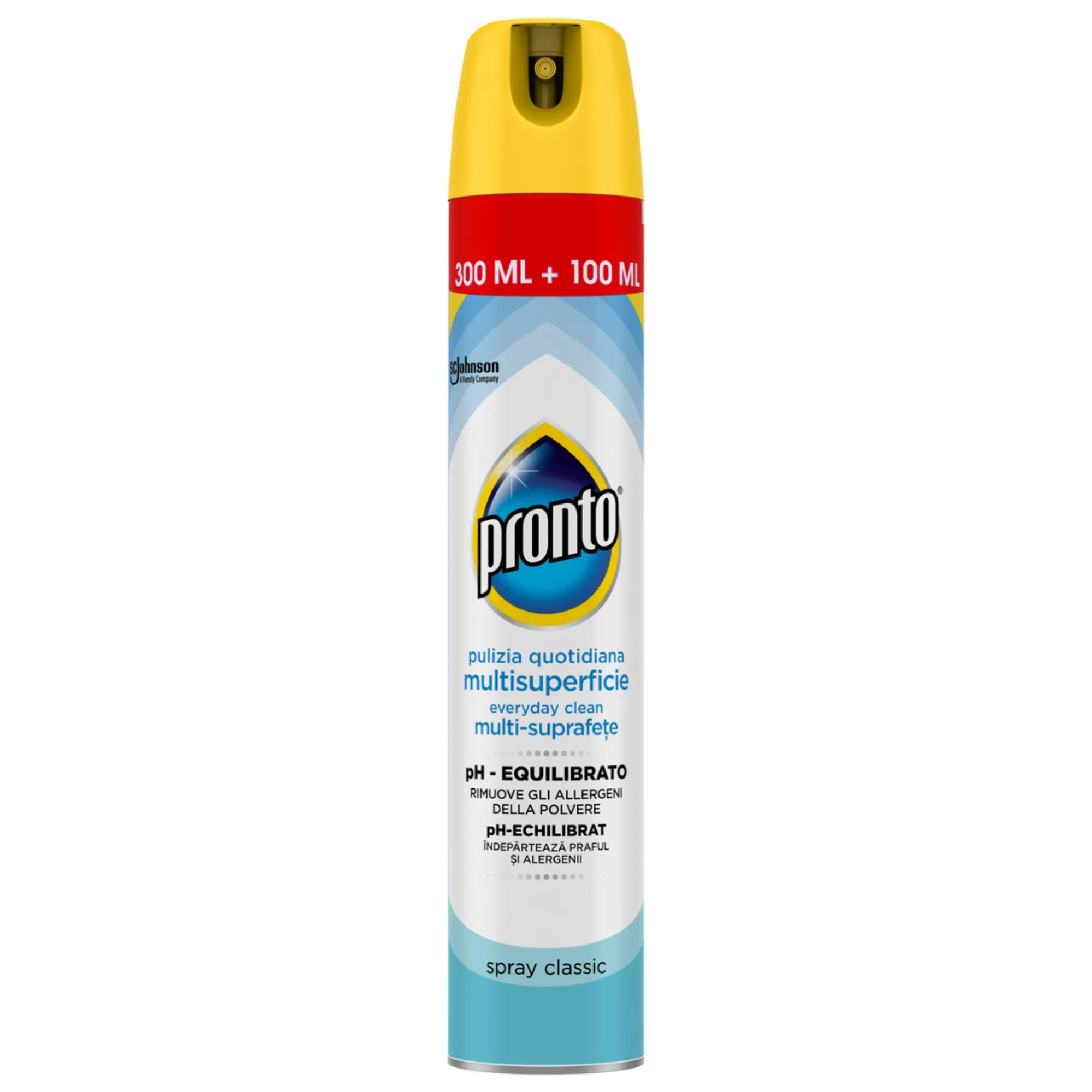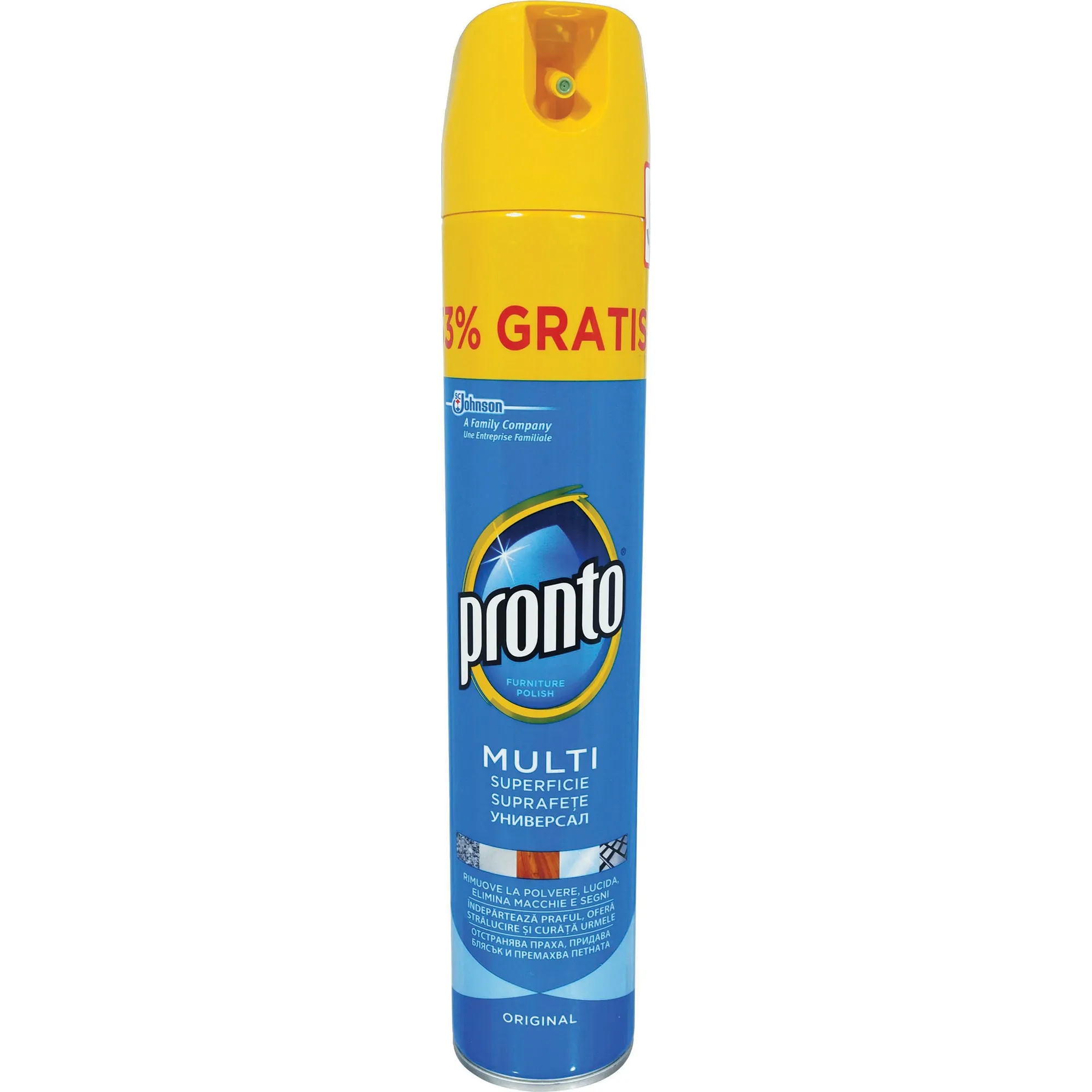 Несколько поверхностей и только один чистящий раствор: спрей для нескольких поверхностей Pronto! Подходит для дерева, стекла, металла, камня и электронных изделий. Удаляет пыль и придает блеск. Чистота и приятный запах в офисе и дома с многофункциональным спреем Pronto! Спрей для очистки и полировки нескольких поверхностей от пыли