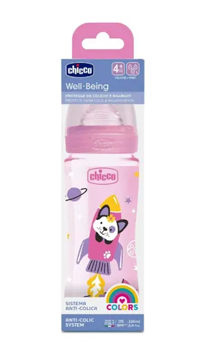 - Бутылочка пластиковая 330 мл Chicco Well-Being Розовая 4m+