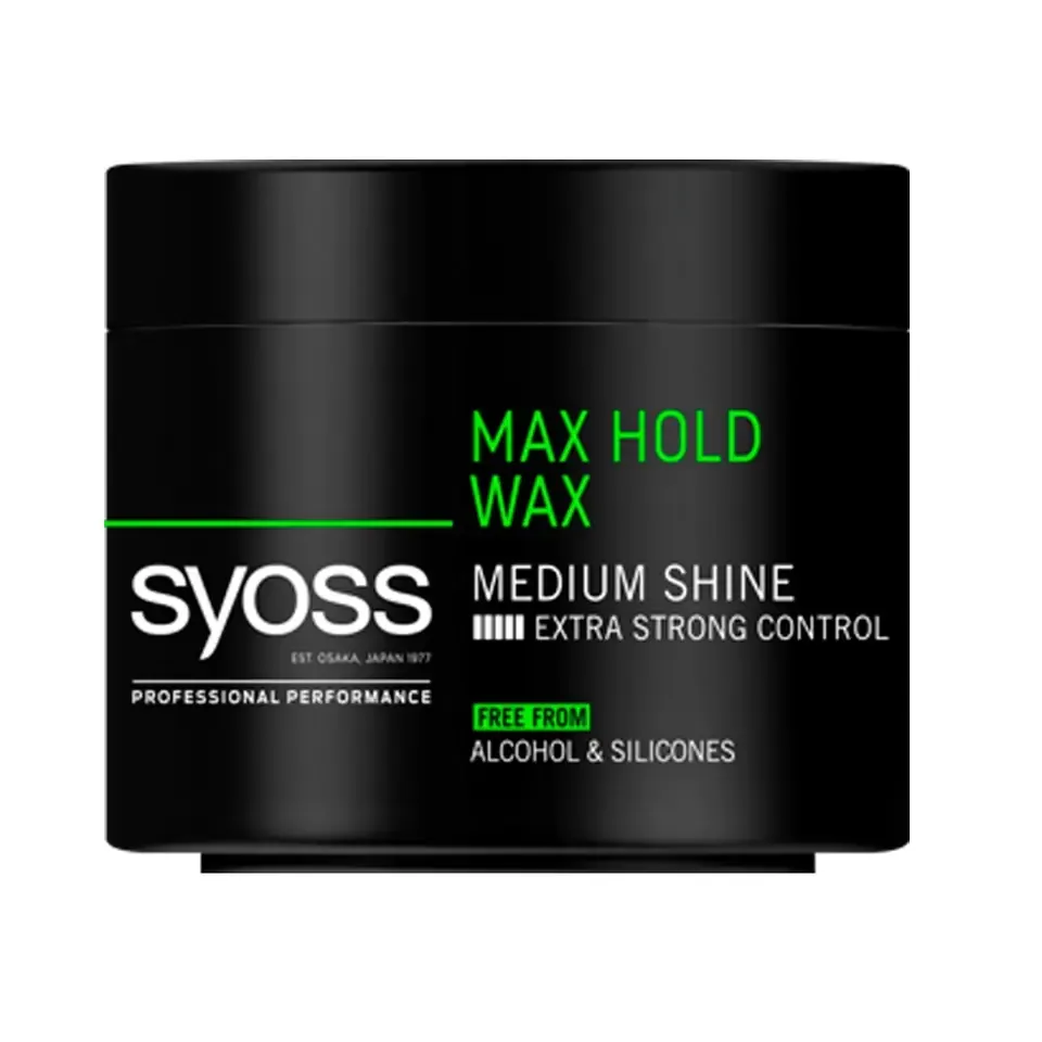 Воск для волос Syoss Max Hold придает гладкий, блестящий вид волосам, максимальный контроль укладки и умеренный блеск прически.