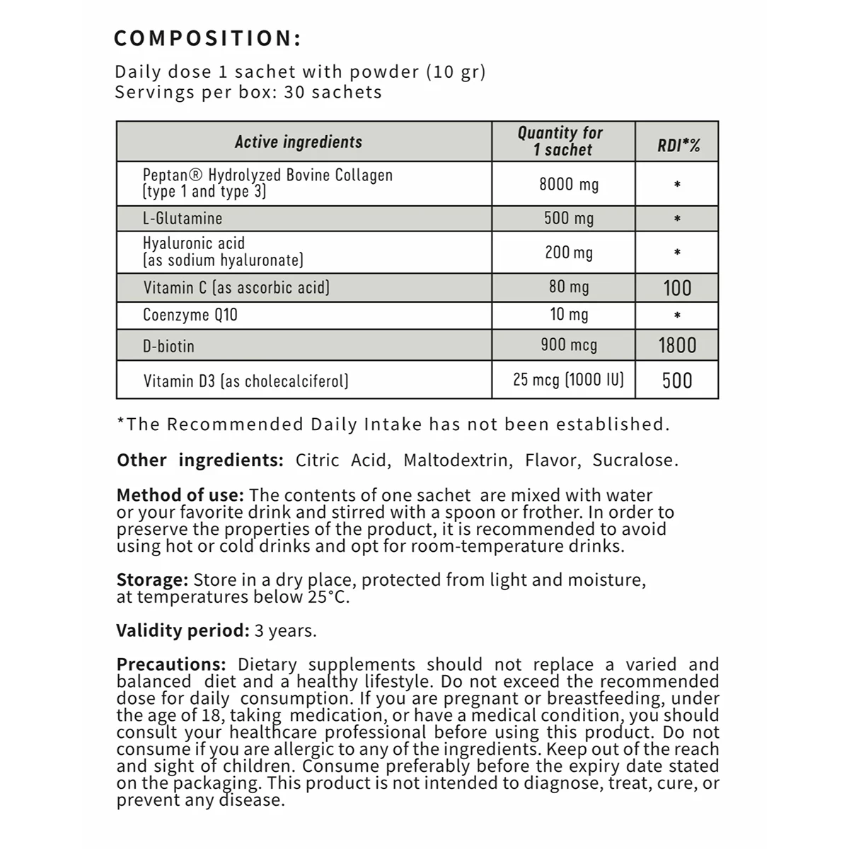 Красота зависит не только от внешнего вида, но и отражает внутреннее здоровье. Collagen Beauty Formula действует на клеточном уровне, помогая вернуть коже эластичность, укрепить волосы и сделать ногти более крепкими. В отличие от обычных добавок, этот комплекс коллагена с высокой биодоступностью создан для максимального усвоения, чтобы каждый ингредиент попадал именно туда, где он необходим. Формула обогащена гидролизованным коллагеном, витамином C, гиалуроновой кислотой, коэнзимом Q10, витамином D3 и L-глутамином, обеспечивая комплексную поддержку красоты.
