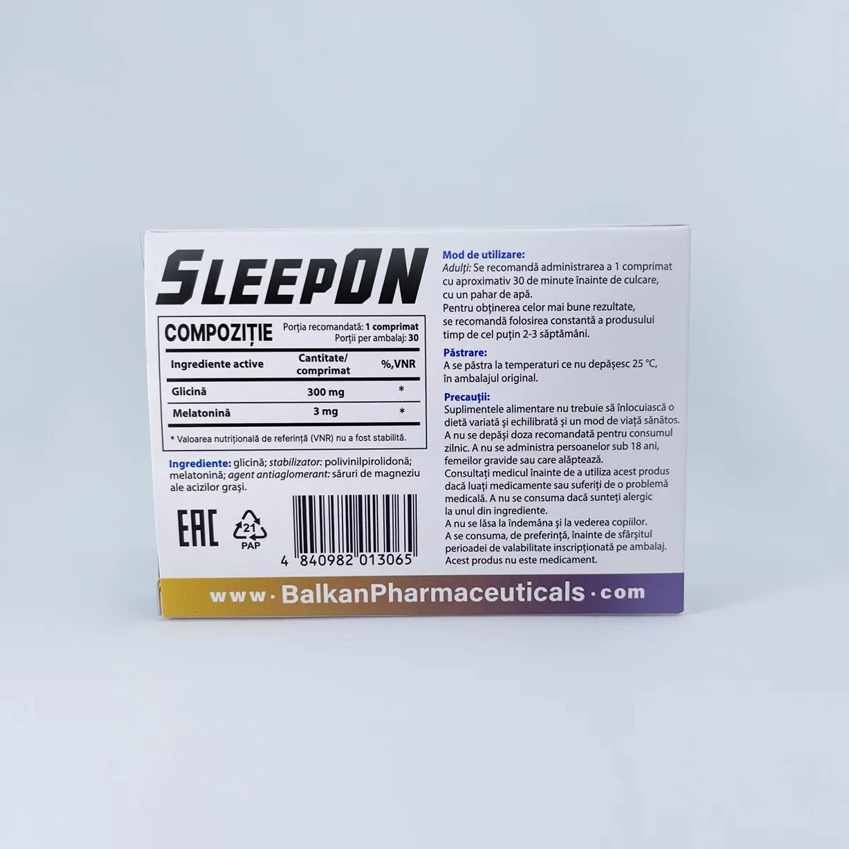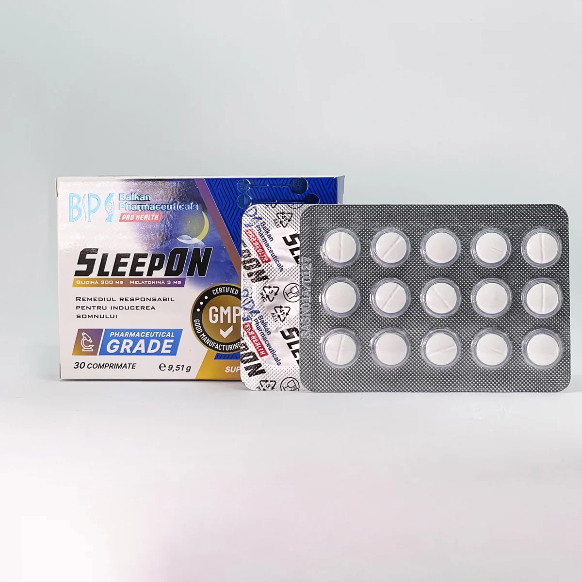 SleepON от Balkan Pharmaceuticals — это инновационная и сбалансированная формула, предназначенная для тех, кто хочет быстро засыпать и наслаждаться глубоким, полноценным сном без риска привыкания. Каждая таблетка содержит: