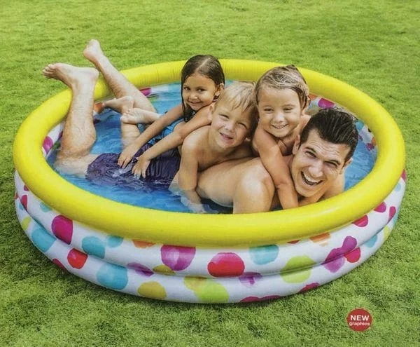 Красочный надувной детский бассейн Intex доставит вашему ребёнку много приятных минут в жаркую, летнюю погоду. Бассейн имеет надувные, мягкие бортики, которые не только добавят комфорта,но и уберегут детей от травм.
