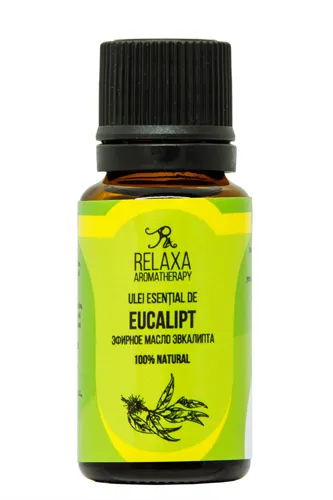 Получают из разных видов эвкалипта которые извлекают паровой дистилляцией листьев вместе с концами веток из эвкалипта шарикового (EucaliptusglobulusLabill.) Действие: антисептическое, антибактериальное, противовирусное, противовоспалительное, болеутоляющее, спазмолитическое, диуретическое, отхаркивающее, жаропонижающее, потогонное, ранозаживляющее, противоревматическое, антипаразитарное. Масло обладает сильным бактерицидным эффектом. Ароматизация воздуха эвкалиптовым маслом является эффективным средством обеззараживания и дезодорирования воздуха в помещении. Распыление 2 % эмульсии эфирного масла убивает 70 % стафилококков. Это позволяет использовать его для профилактики заражения воздушно-капельными инфекциями и лечения многих инфекционных заболеваний.Исследованиями отечественных ученых установлено иммуномодулирующее и антиканцерогенное действие эвкалиптового масла. Горячие и холодные ингаляции позволяют быстро и эффективно устранить воспалительные и застойные явления в органах дыхания и носоглотки, очистить дыхательные пути и избавиться от насморка и кашля при трахеите, бронхите, воспалении и туберкулезе легких. Ингаляции и полоскания устраняют воспаление, оказывают обезболивающее и жаропонижающее действие при ангине, тонзиллите, ларингите, синусите, рините, простуде, лихорадке. Способствует насыщению крови кислородом и является эффективным средством от головной боли, связанной с духотой, гиподинамией и усталостью.Снимает мышечное напряжение после физических нагрузок. Является хорошим противоревматическим средством, устраняющим отечность и боль в суставах при артритах.